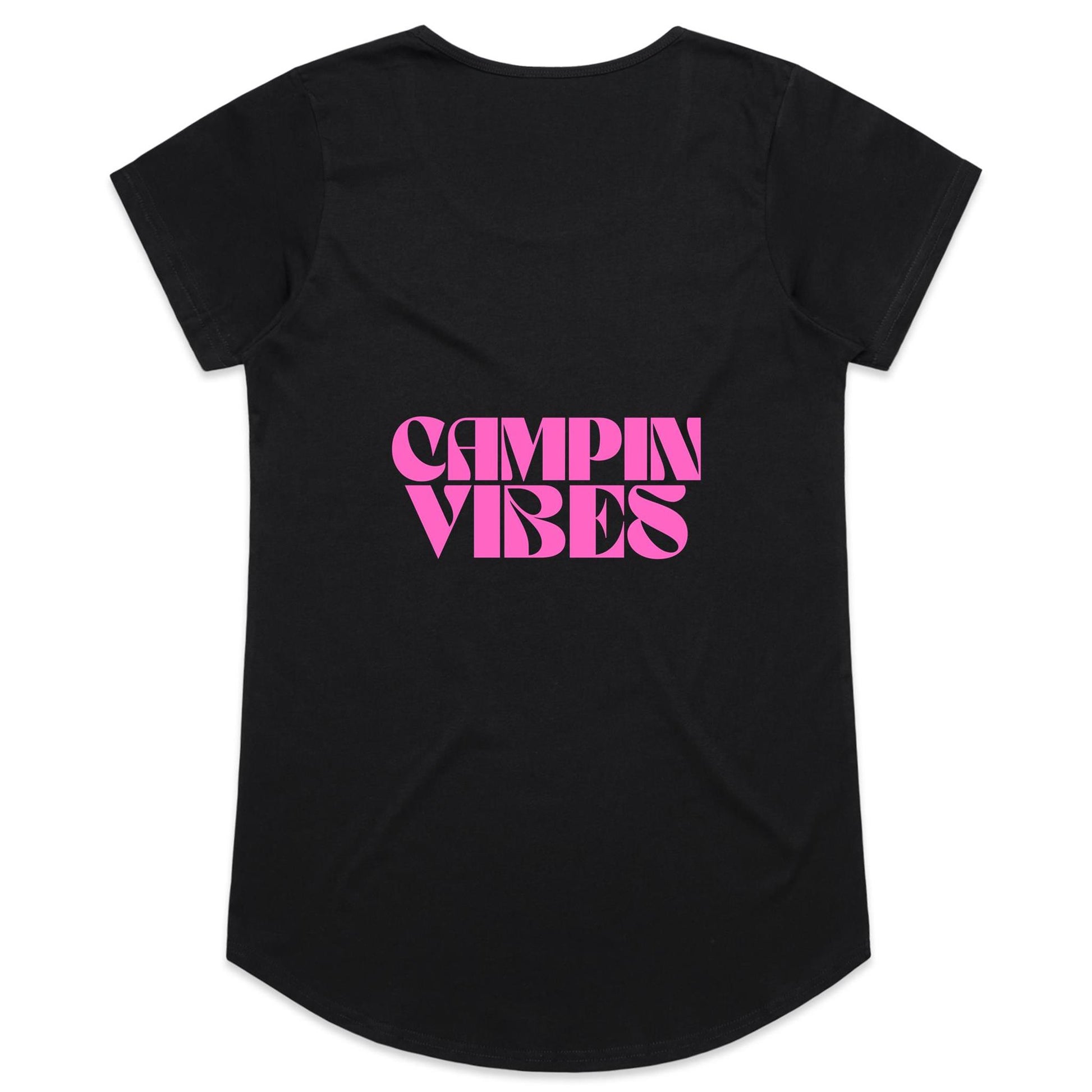 This Tee has curves where it counts. If you care about fashion features it has scoops, scallops and capped sleeves but all you really need to know is that it looks great on all figures, curvy or otherwise.
