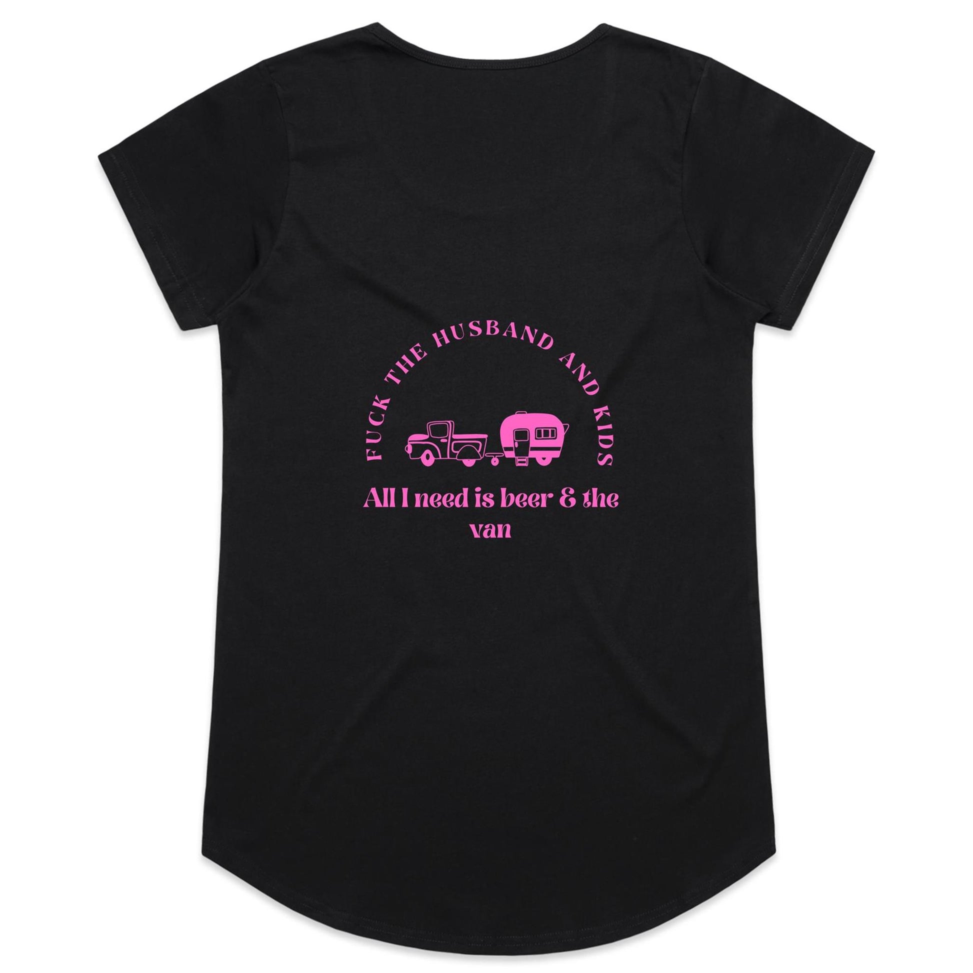 This Tee has curves where it counts. If you care about fashion features it has scoops, scallops and capped sleeves but all you really need to know is that it looks great on all figures, curvy or otherwise.