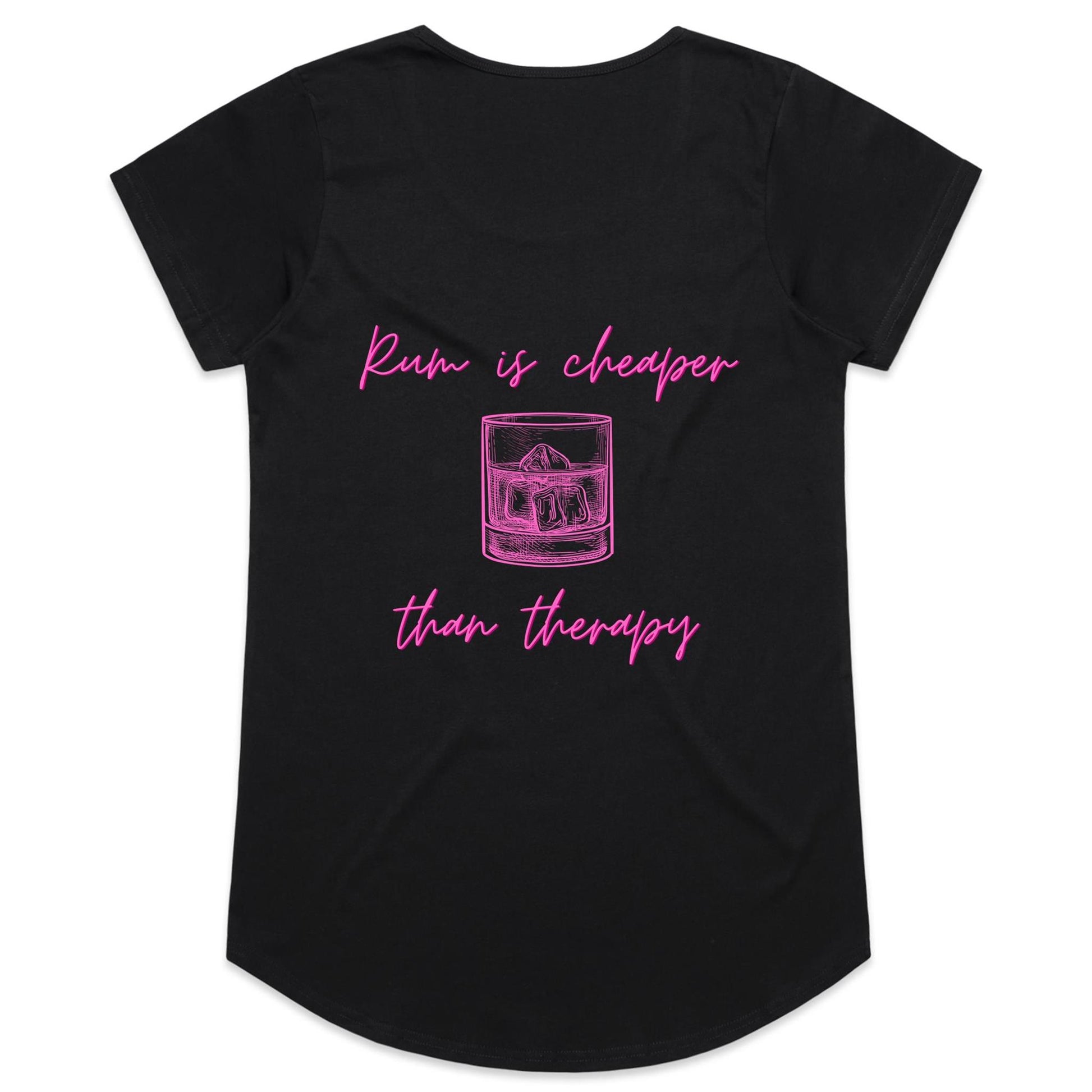 This Tee has curves where it counts. If you care about fashion features it has scoops, scallops and capped sleeves but all you really need to know is that it looks great on all figures, curvy or otherwise.